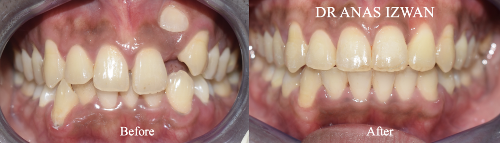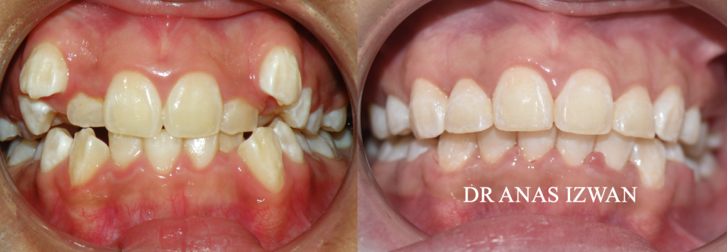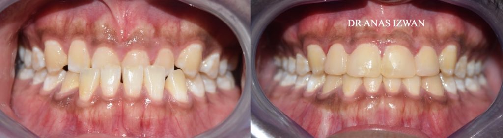 Treatment: 2 upper premolar extractions, fixed orthodontic therapy